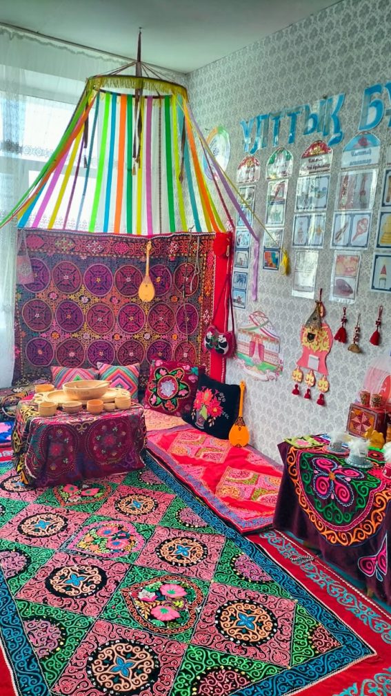 Ұлттық бұрыштағы жұмыс балалардың танымдық қызығушылығынарттырып, сөздікқорынбайытады, туғанжеріне және халқынадегенсүйіспеншілігінқалыптастырады. Бұл орта балалардыңұлттыққұндылықтардықұрметтеуіне және руханидамуынаықпалетеді.