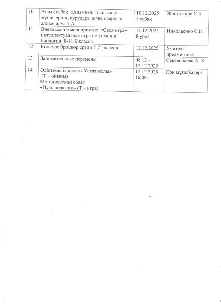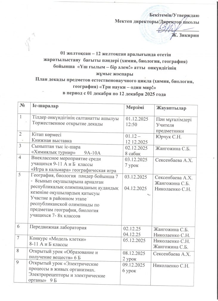 Жаратылыстану-ғылыми цикл пәндерінің онкүндігінің жоспары