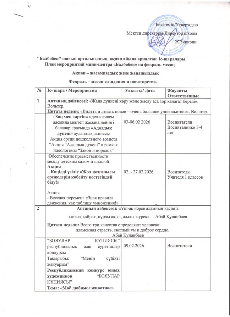 Ақпан айына арналған іс-шаралары