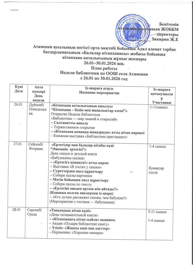 Коммунальное государственное учреждение "Общеобразовательная школа села Атамекен отдела образования по Бурабайскому району управления образования Акмолинской области"