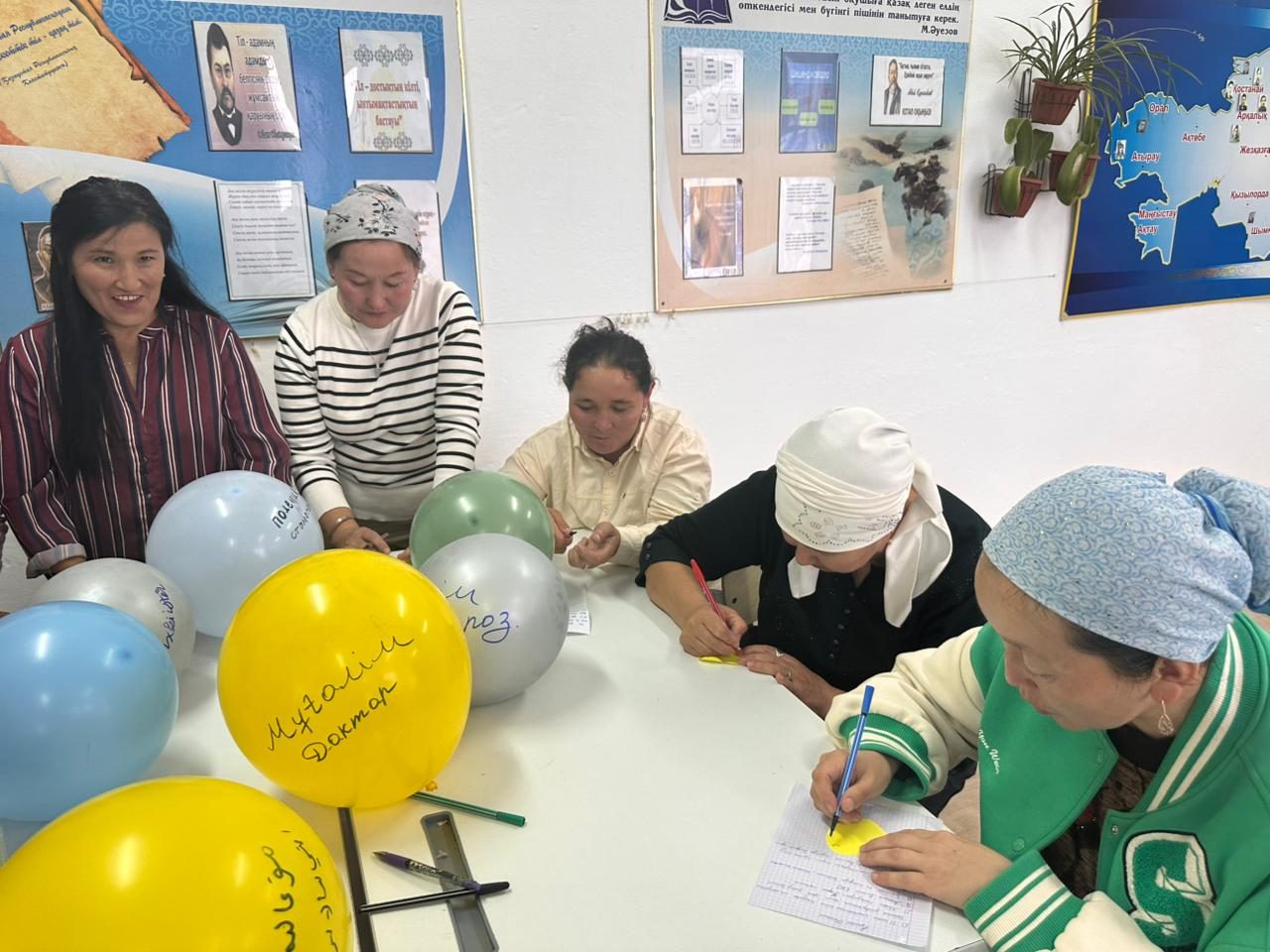 - Елестетіп көріңізші, олар нақты не істеп жатыр? Және оны жазыңыз (қағаз парақтарына оқу орнын, мамандығын, қаласын жазыңыз).